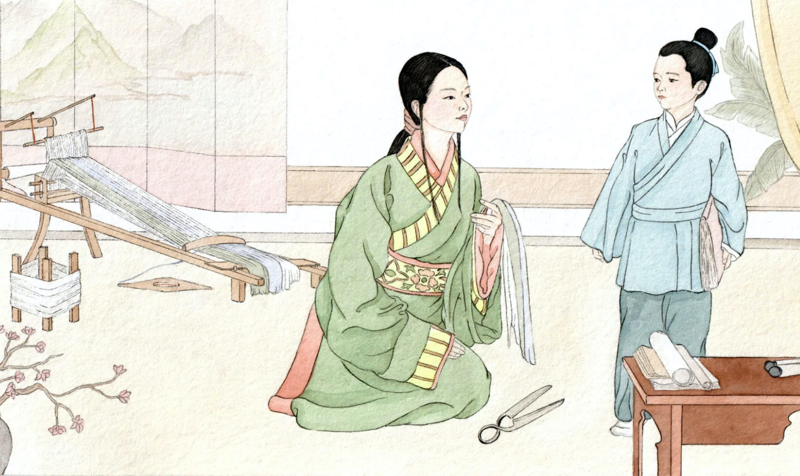 Nghe vậy, Mạnh mẫu cầm kéo và cắt đôi tấm vải mà bà đang dệt ngay trước mặt Mạnh Tử, rồi răn dạy ông: "Nếu con không học hành chăm chỉ và bỏ dở giữa chừng, cũng giống như tấm vải này mẹ đã dệt. Mẹ đã làm việc chăm chỉ nửa ngày, nhưng chỉ trong chốc lát nó đã bị hủy hoại."